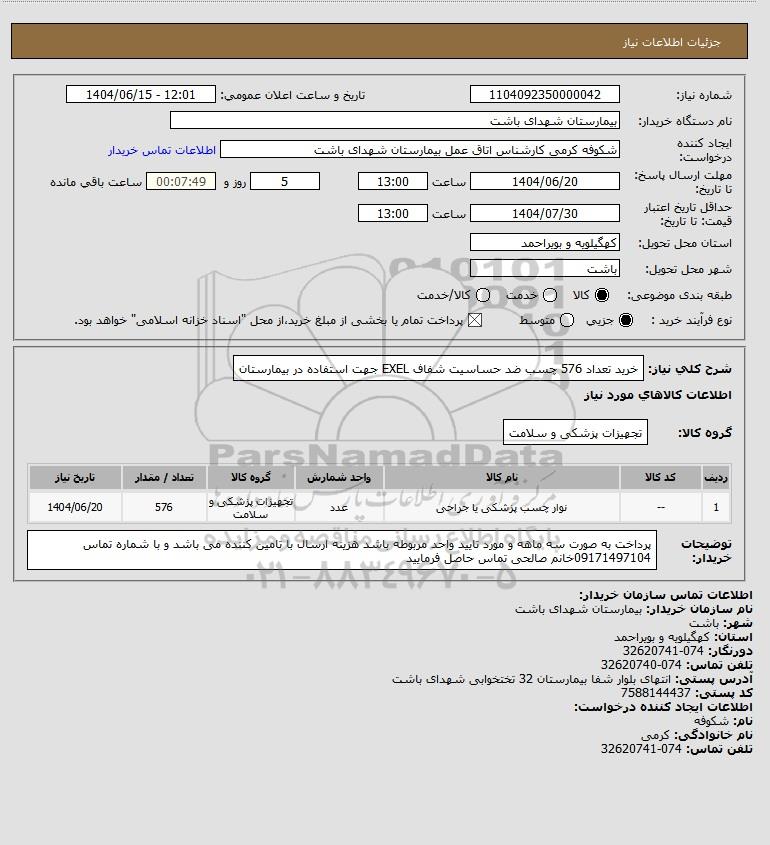 استعلام خرید تعداد 576 چسب ضد حساسیت شفاف EXEL جهت استفاده در بیمارستان, استعلام خرید تعداد 576 چسب ضد حساسیت شفاف EXEL جهت استفاده در بیمارستان