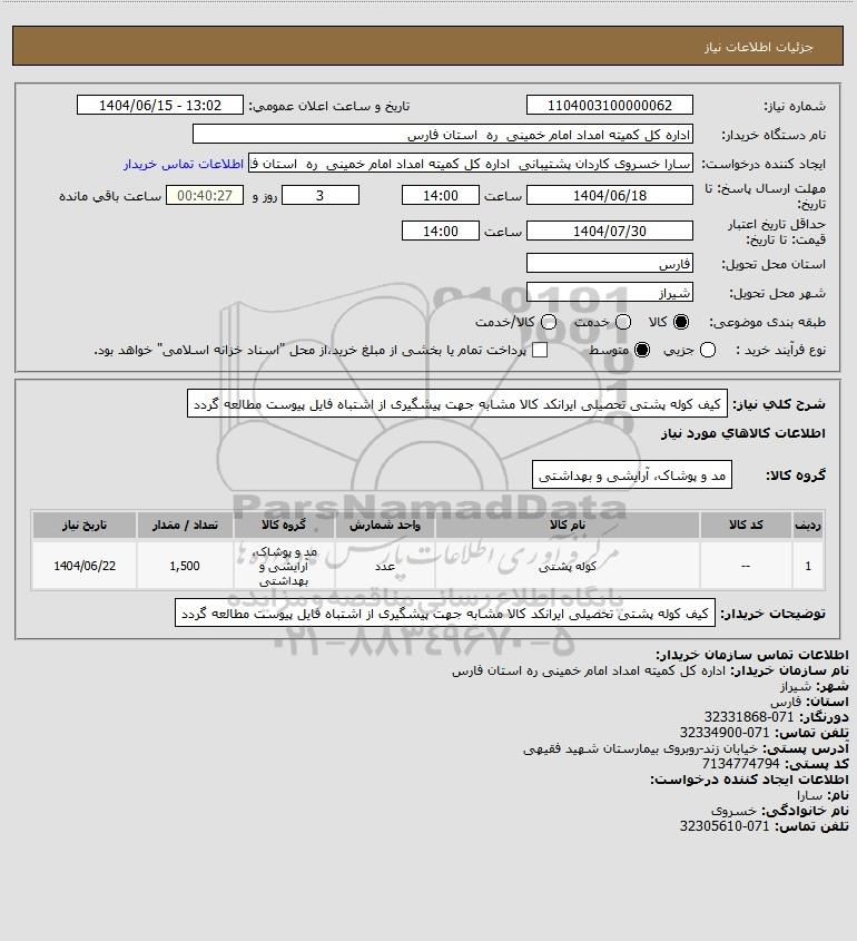 نام دستگاه خریدار:اداره کل کمیته امداد امام خمینی ره استان فارس