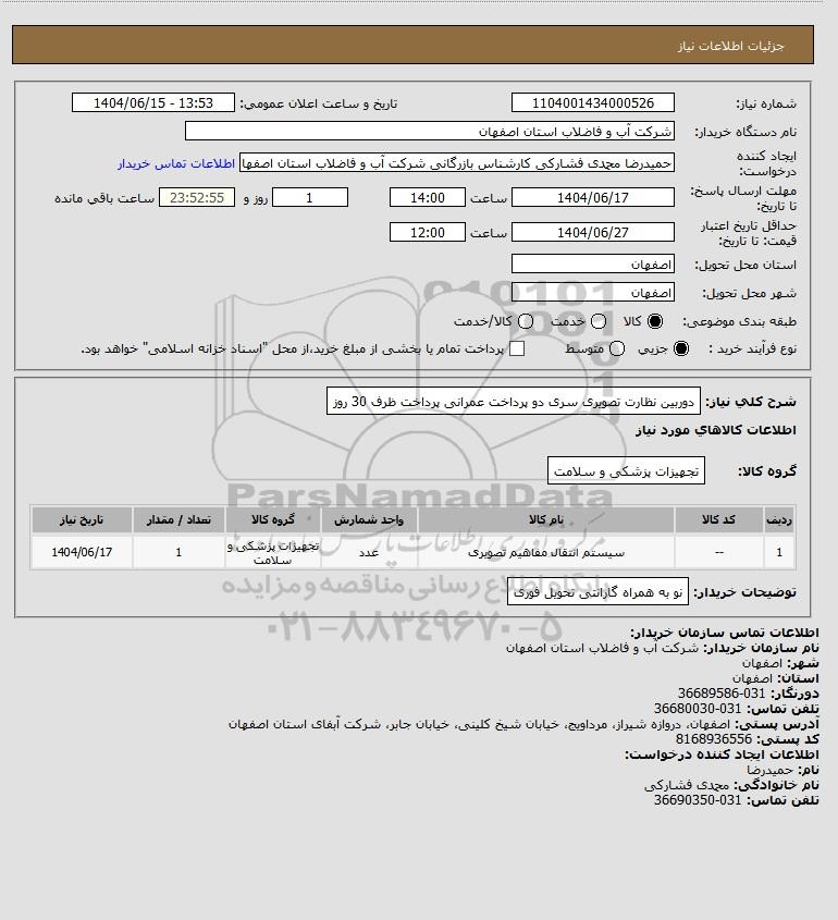 شرح کلی نیاز: دوربین نظارت تصویری سری دو پرداخت عمرانی پرداخت ظرف 30 روز