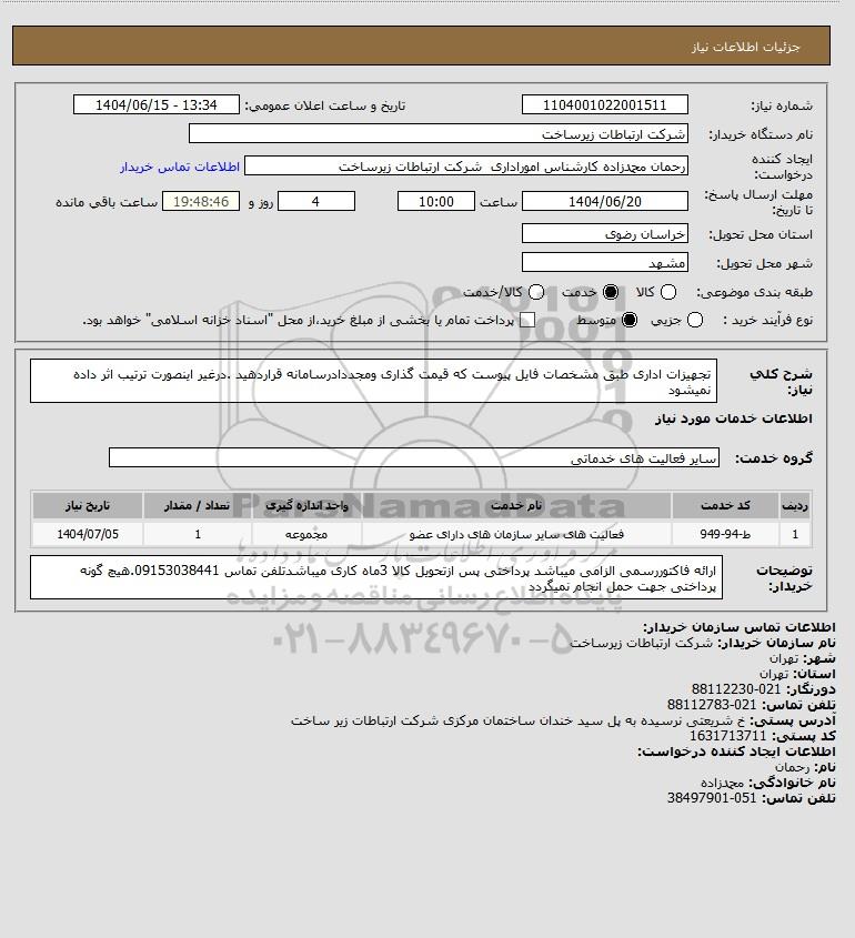 نام سازمان خریدار: شرکت ارتباطات زیرساخت