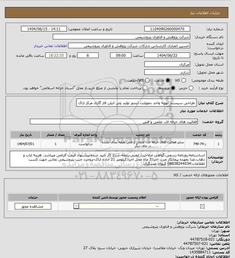 نام دستگاه خریدار:شرکت پژوهش و فناوری پتروشیمی