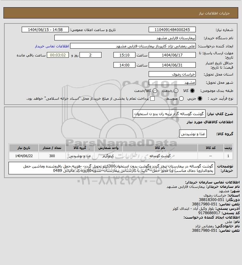 نام دستگاه خریدار:بیمارستان فارابی مشهد