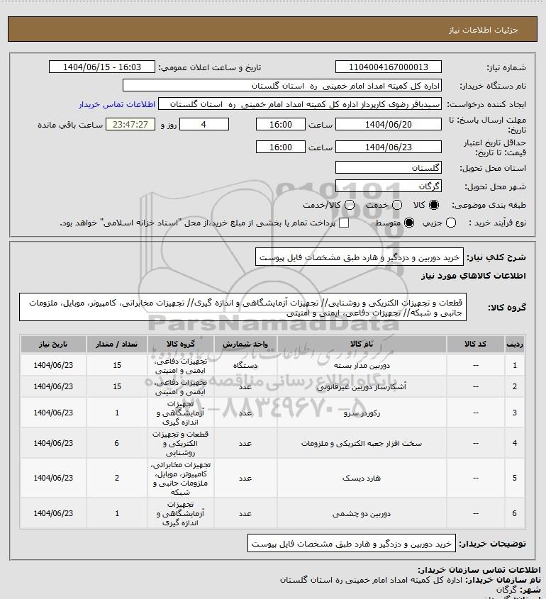 شرح کلی نیاز: خرید دوربین و دزدگیر و هارد طبق مشخصات فایل پیوست
