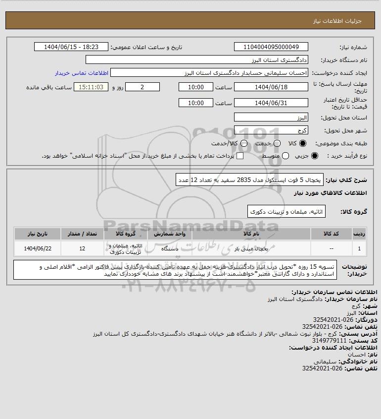 شرح کلی نیاز: یخچال 5 فوت ایستکول مدل 2835 سفید به تعداد 12 عدد