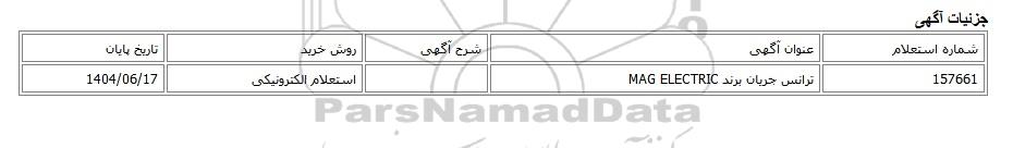 استعلام الکترونیکی ترانس جریان برند MAG ELECTRIC, استعلام الکترونیکی، ترانس جریان برند MAG ELECTRIC