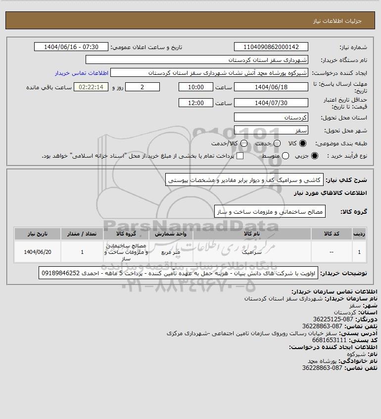 نام دستگاه خریدار:شهرداری سقز استان کردستان