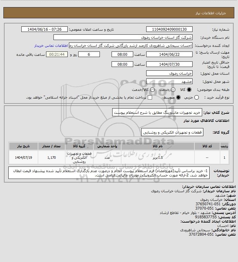 نام دستگاه خریدار:شرکت گاز استان خراسان رضوی