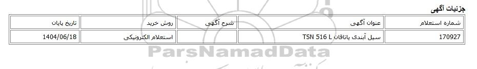 | 170927 | سیل آبندی یاتاقان TSN 516 L | استعلام الکترونیکی | 1404/06/18 |