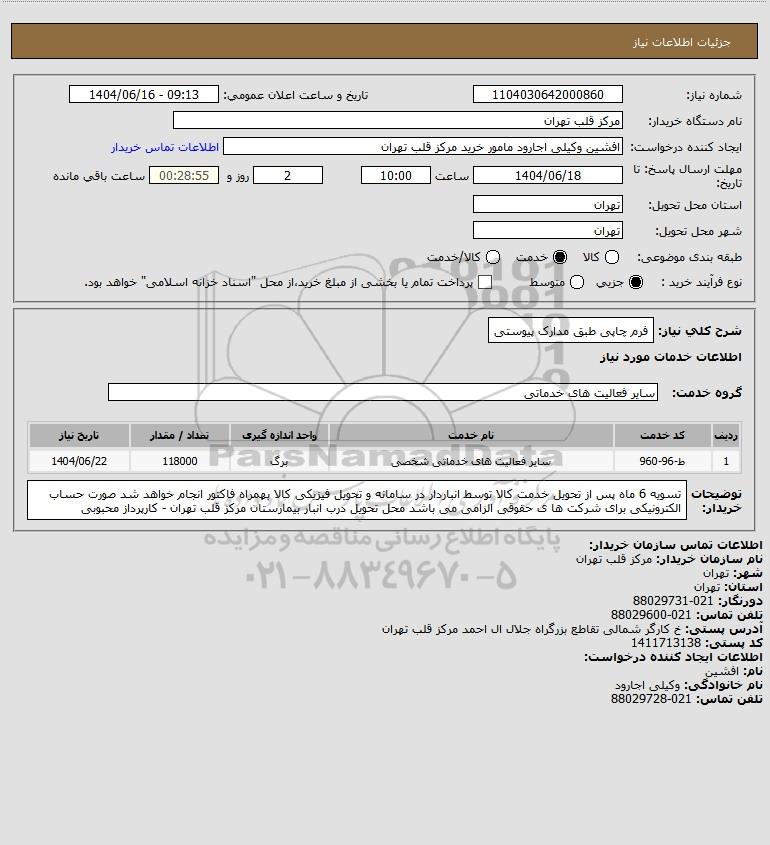 شرح کلی نیاز: فرم چاپی طبق مدارک پیوستی