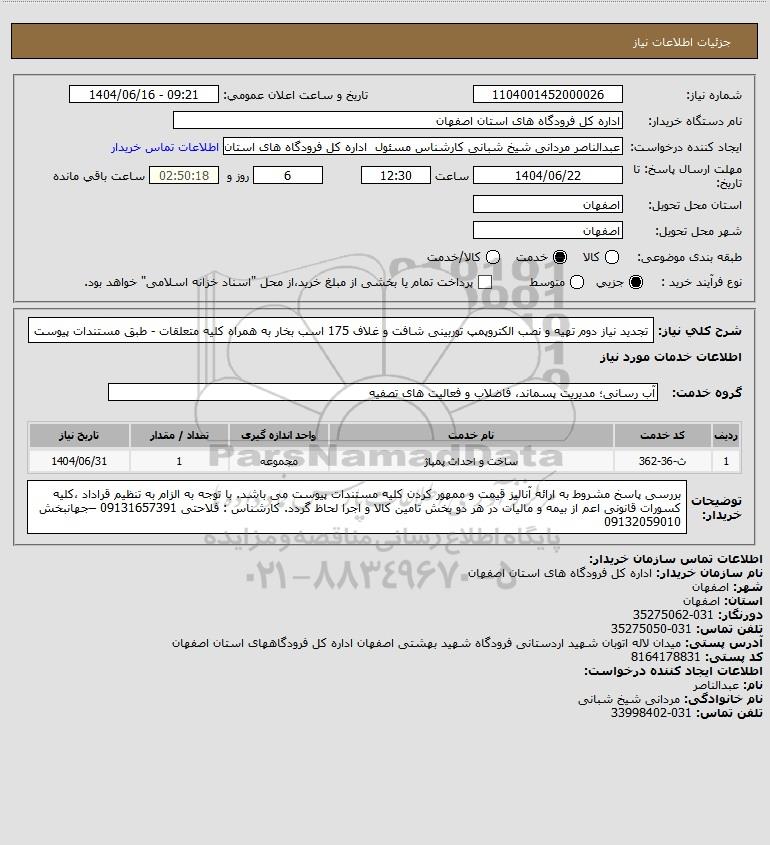 نام دستگاه خریدار:اداره کل فرودگاه های استان اصفهان