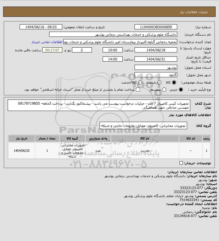 نام سازمان خریدار: دانشگاه علوم پزشکی و خدمات بهداشتی درمانی بوشهر