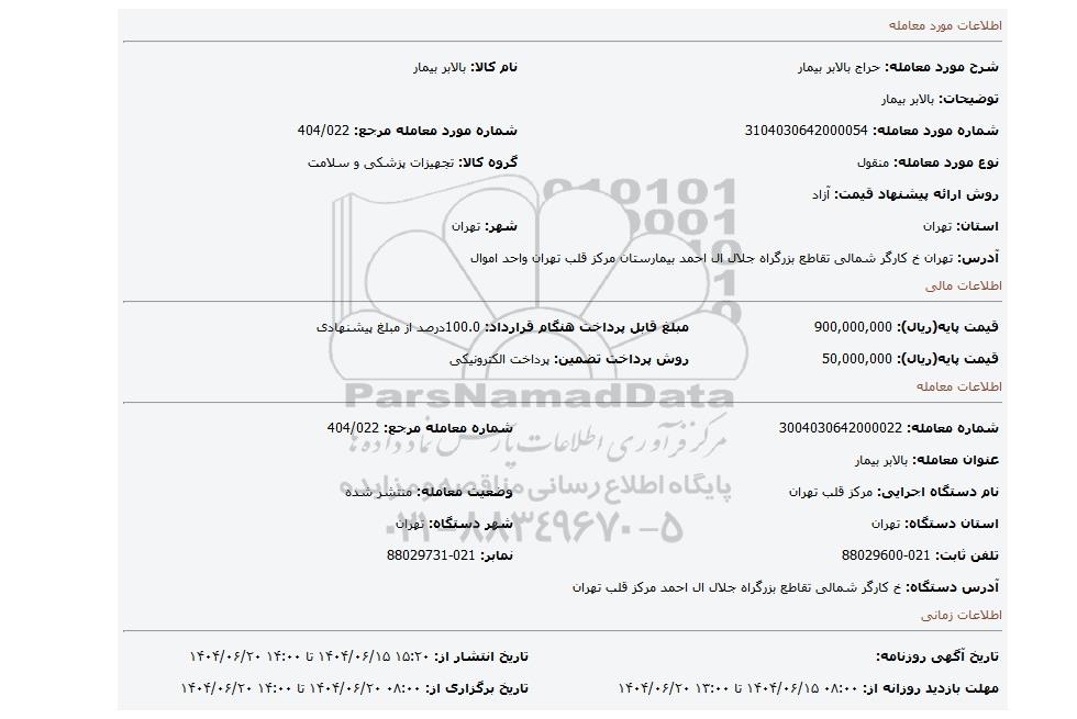 نام دستگاه اجرایی: مرکز قلب تهرانوضعیت معامله: منتشر شده