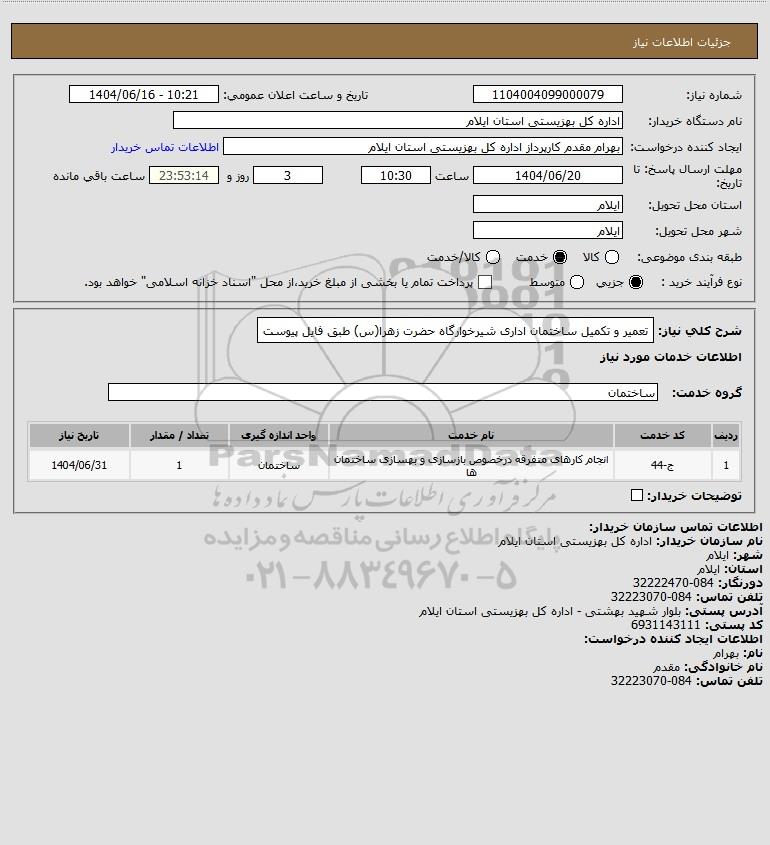 نام دستگاه خریدار:اداره کل بهزیستی استان ایلام