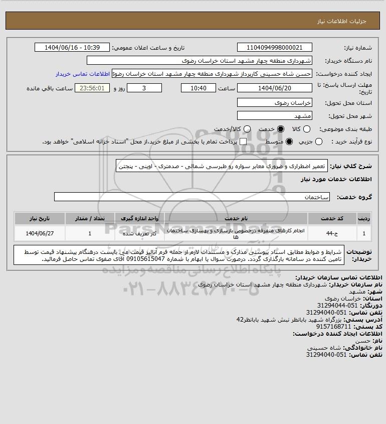نام دستگاه خریدار:شهرداری منطقه چهار مشهد استان خراسان رضوی