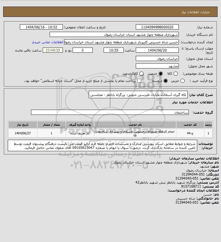 نام دستگاه خریدار:شهرداری منطقه چهار مشهد استان خراسان رضوی