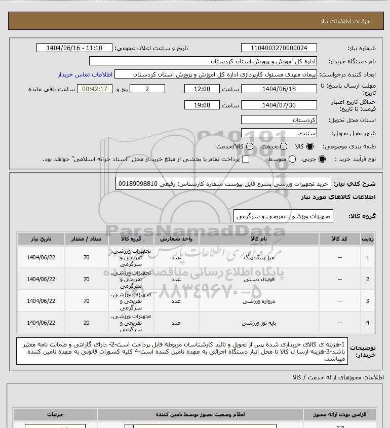 نام سازمان خریدار: اداره کل اموزش و پرورش استان کردستان