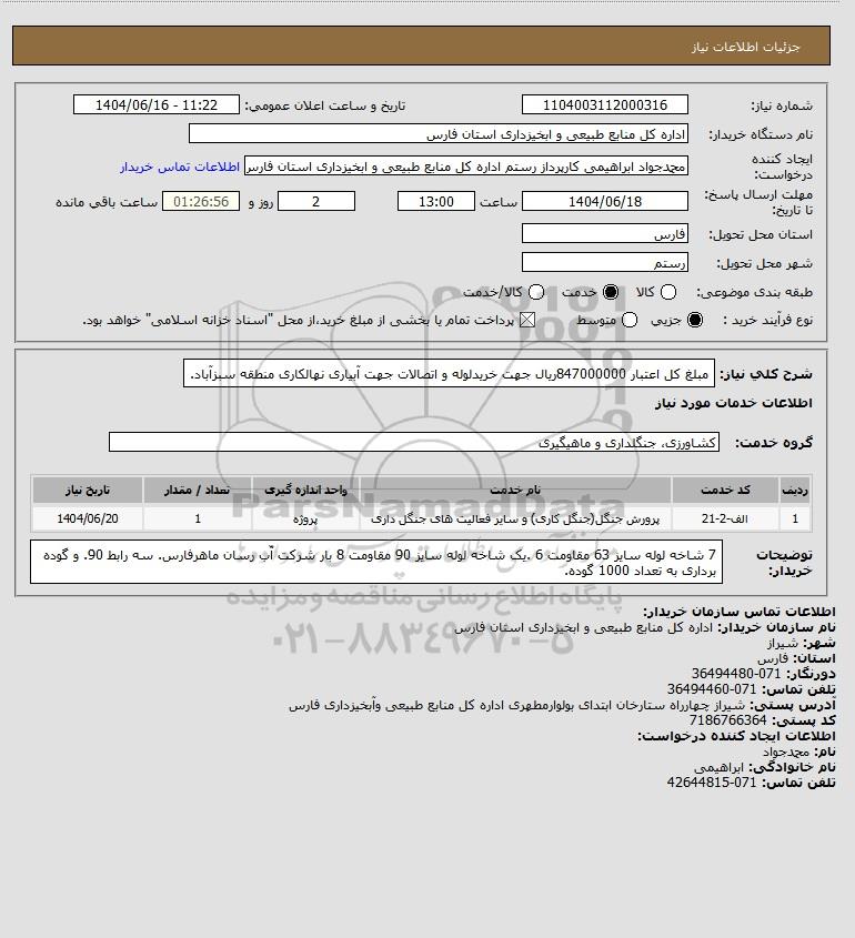 نام دستگاه خریدار:اداره کل منابع طبیعی و ابخیزداری استان فارس