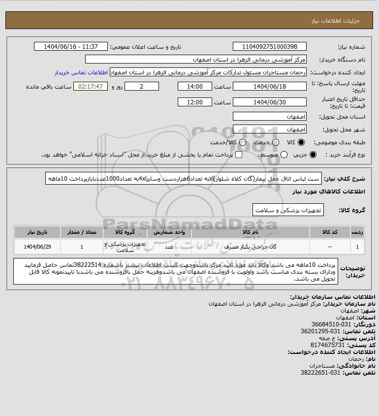 استعلام ست لباس اتاق عمل بیمار(گان کلاه شلوار)xlبه تعداد6هزاردست وسایز4xlبه تعداد1000عددبابازپرداخت 10ماهه, استعلام ست لباس اتاق عمل بیمار(گان کلاه شلوار)xlبه تعداد6هزاردست وسایز4xlبه تعداد1000عددبابازپرداخت 10ماهه