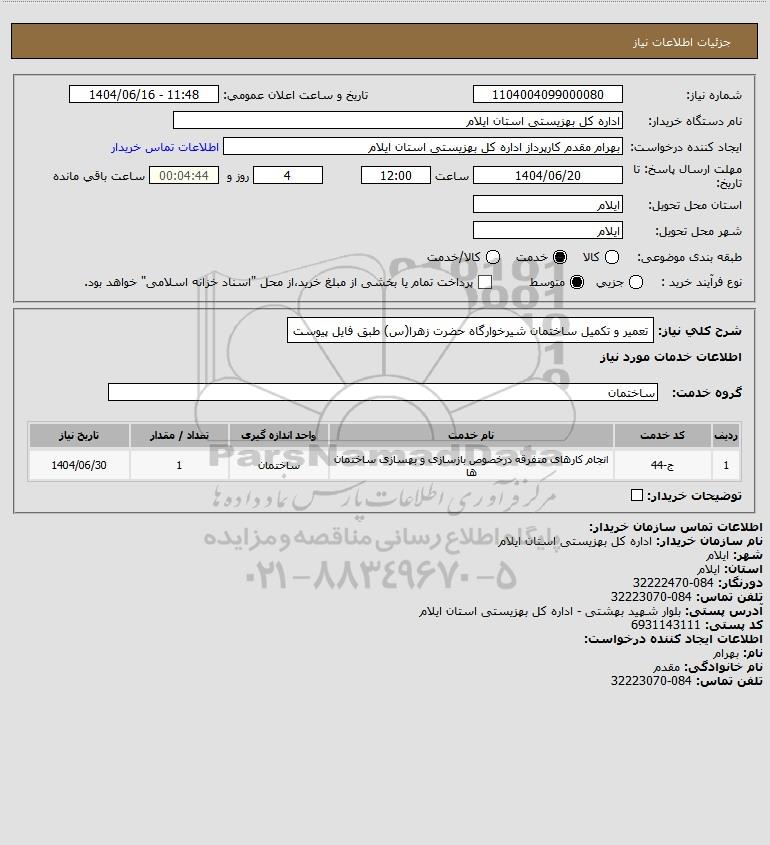 نام دستگاه خریدار:اداره کل بهزیستی استان ایلام