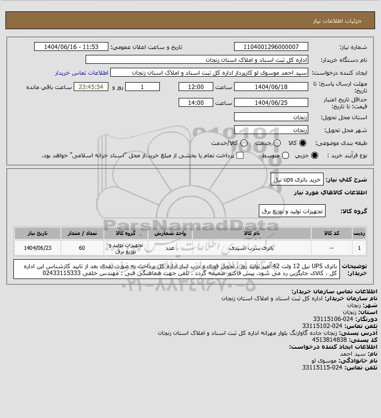 شرح کلی نیاز: خرید باتری ups نیل