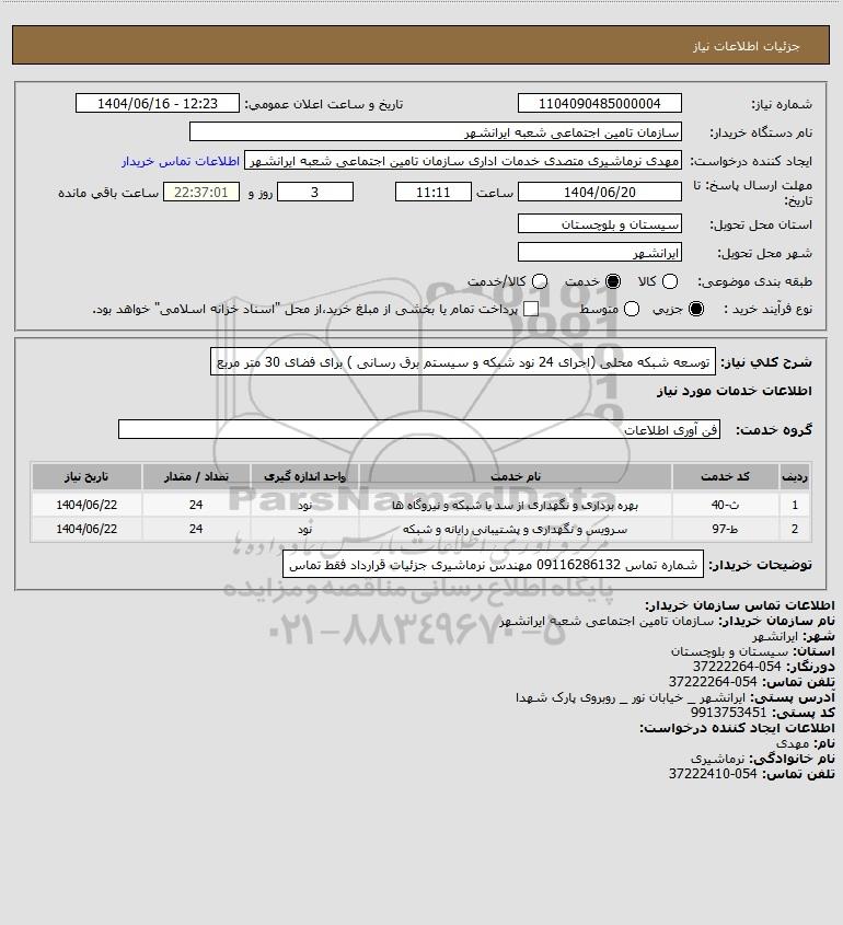 نام سازمان خریدار: سازمان تامین اجتماعی شعبه ایرانشهر