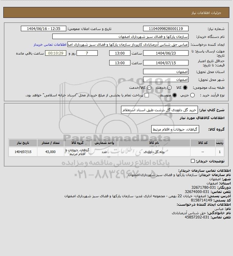 نام دستگاه خریدار:سازمان پارکها و فضای سبز شهرداری اصفهان