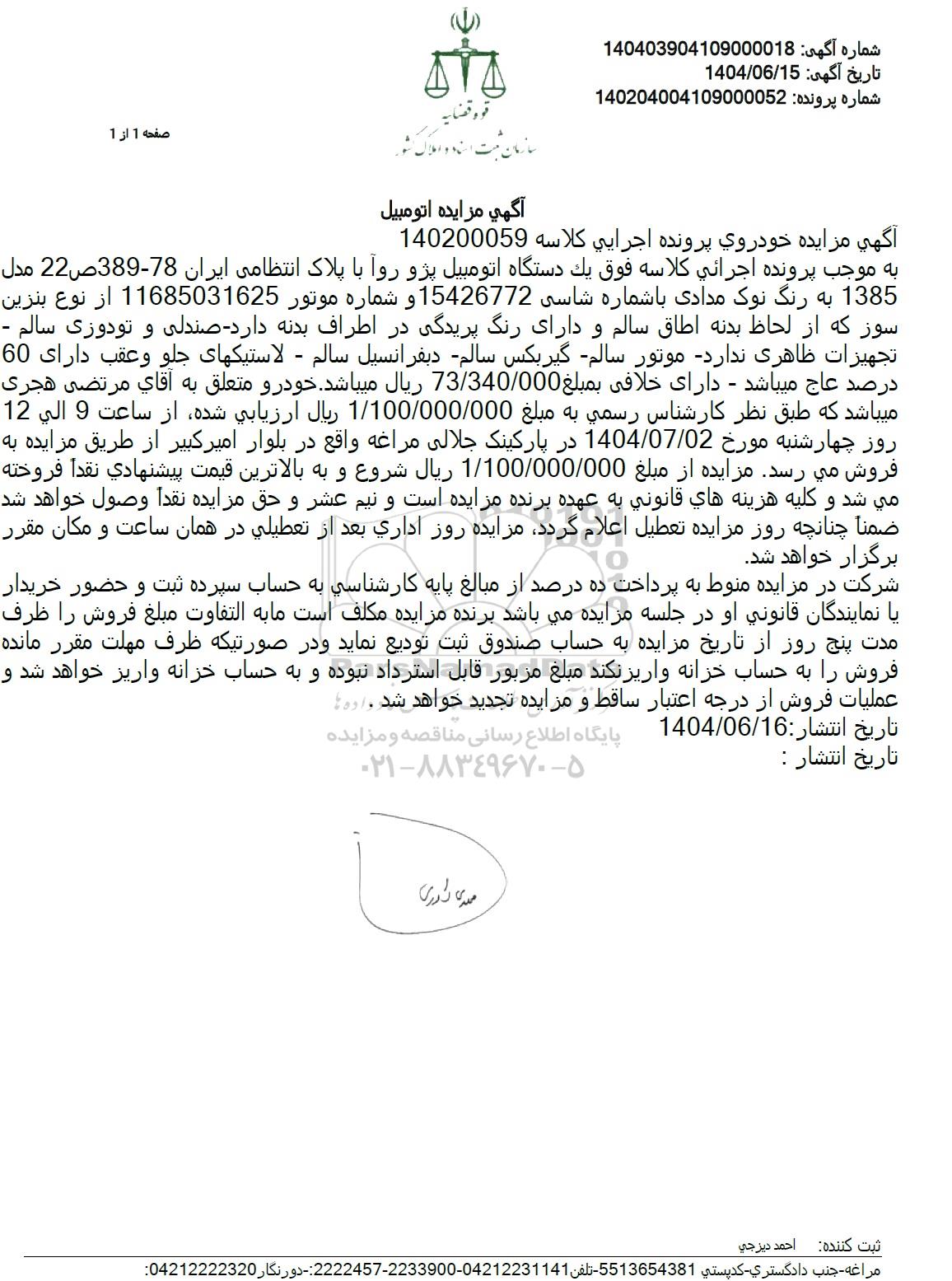 مزایده یک دستگاه اتومبیل پژو روآ , مزایده یک دستگاه اتومبیل پژو روآ