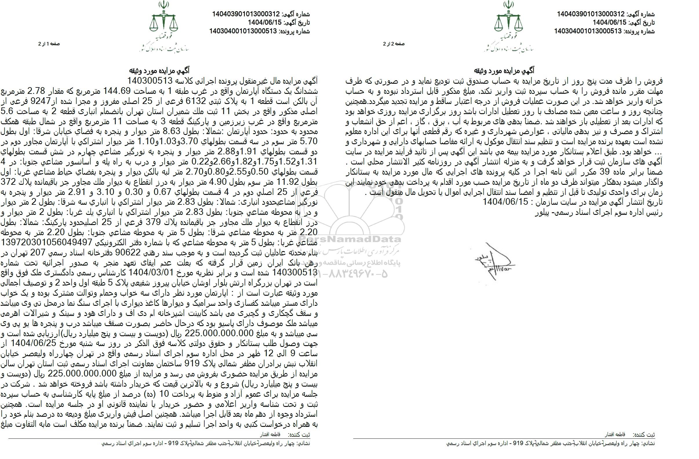 مزایده فروش ششدانگ یکدستگاه آپارتمان به پلاک ثبتی 144.69 فرعی از 25 اصلی , مزایده فروش ششدانگ یکدستگاه آپارتمان به پلاک ثبتی 144.69 فرعی از 25 اصلی