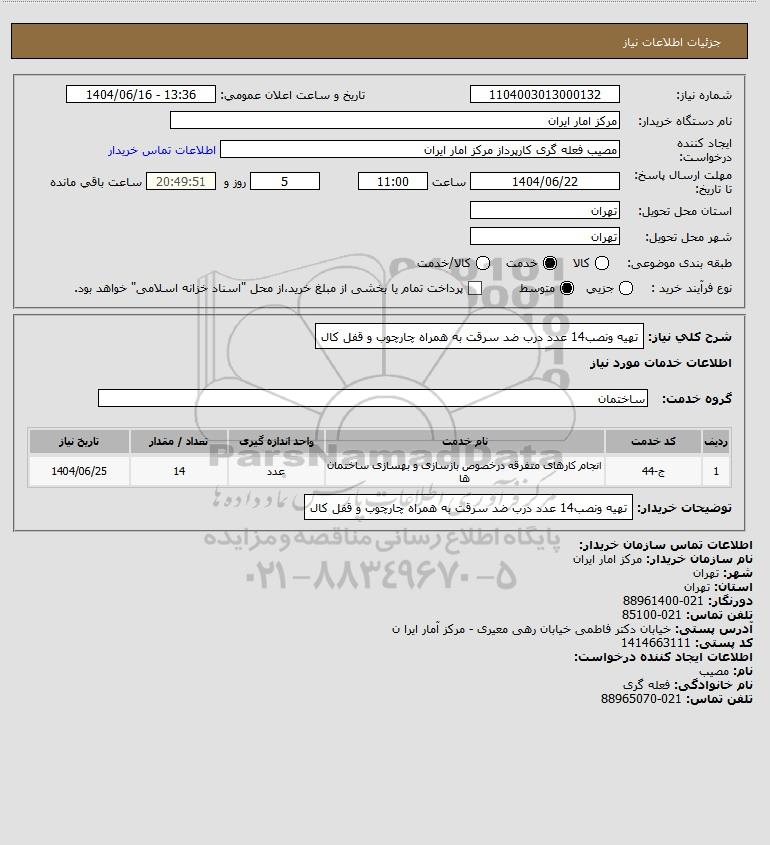 شرح کلی نیاز: تهیه ونصب14 عدد درب ضد سرقت به همراه چارچوب و قفل کال