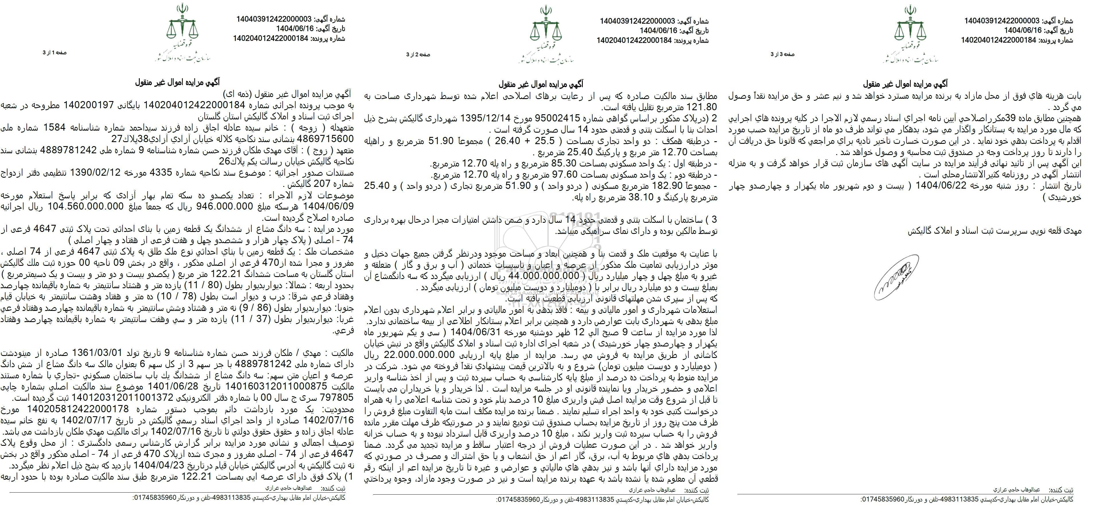 مزایده فروش سه دانگ مشاع از شش دانگ یک قطعه زمین با بنای احداثی به پلاک ثبتی 4647 فرعی از 78 اصلی, مزایده فروش سه دانگ مشاع از شش دانگ یک قطعه زمین با بنای احداثی به پلاک ثبتی 4647 فرعی از 78 اصلی