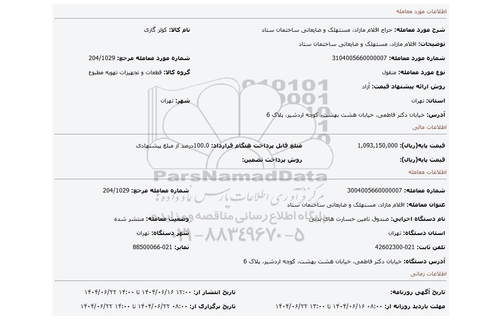 | عنوان معامله: اقلام مازاد، مستهلک و ضایعاتی ساختمان ستاد | ||