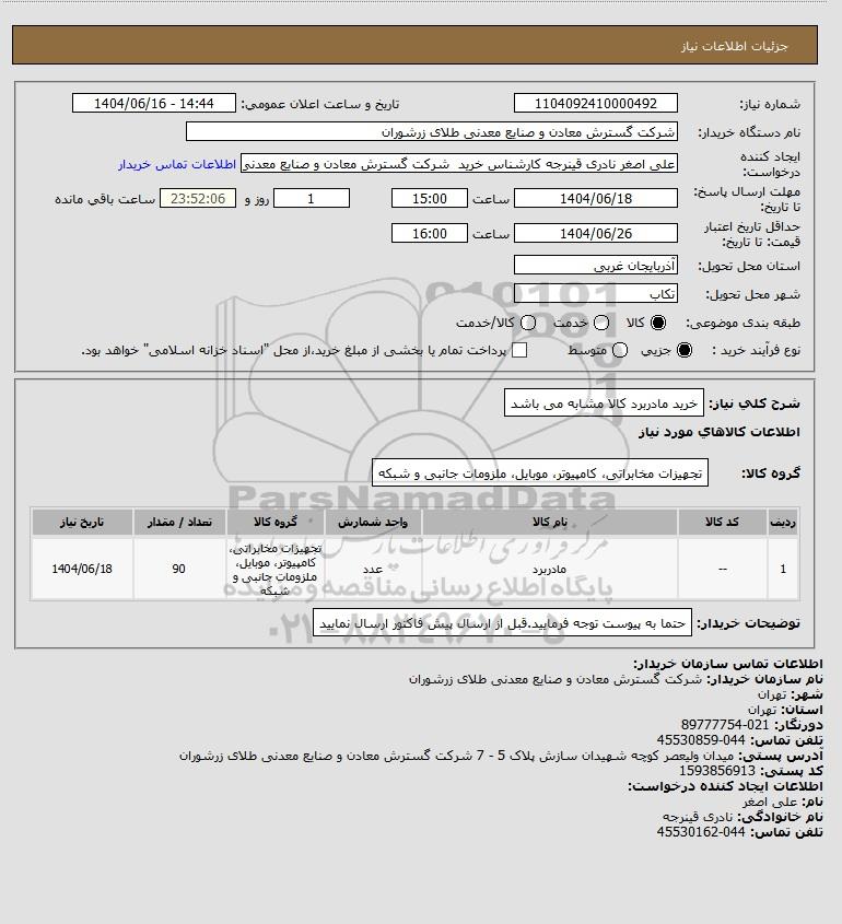 | 1 | -- | مادربرد | عدد | تجهیزات مخابراتی، کامپیوتر، موبایل، ملزومات جانبی و شبکه | 90 | 1404/06/18 |