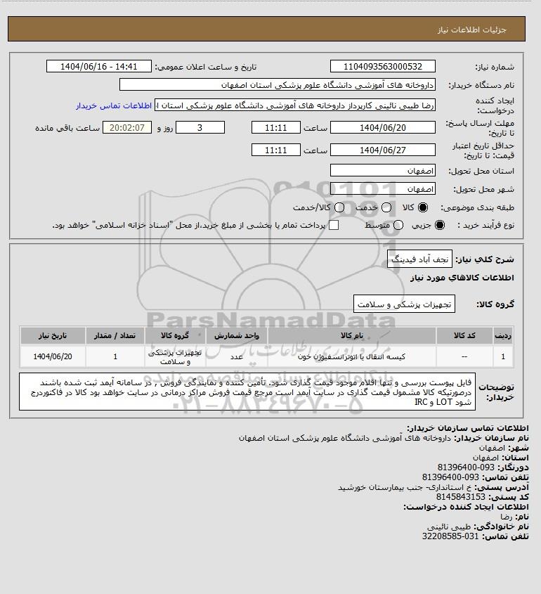 شرح کلی نیاز: نجف آباد فیدینگ