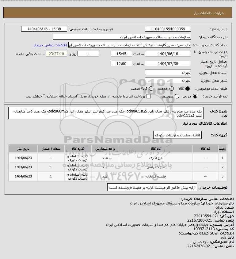 نام دستگاه خریدار:سازمان صدا و سیمای جمهوری اسلامی ایران