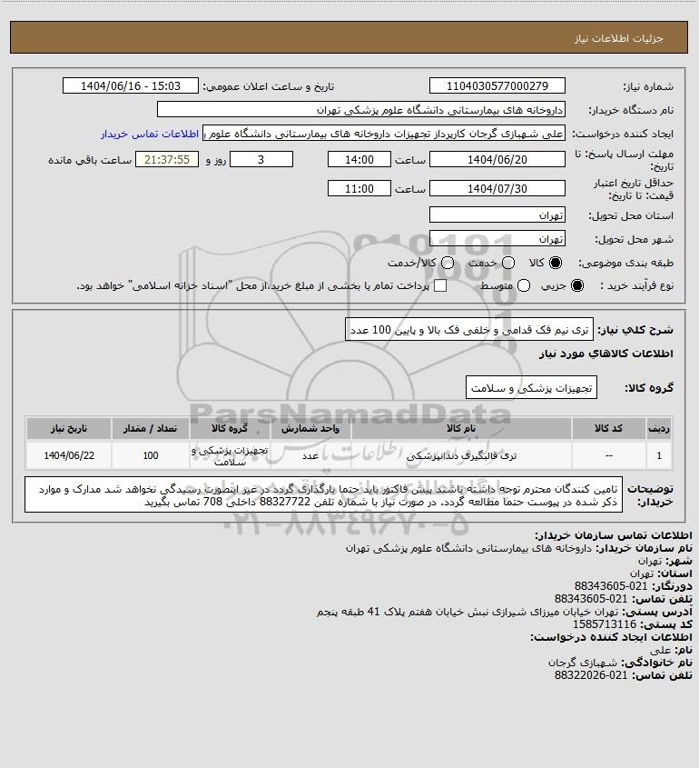 استعلام بها و موضوع استعلام استعلام تری نیم فک قدامی و خلفی فک بالا و پایین 100 عدد به اطلاع کلیه شرکتها و افراد متخصص واجد شرایط میرساند، آگهی گذار در نظر دارد از طریق استعلام بها، نسبت به انتخاب و دریافت پیشنهادات اقدام نماید. این استعلام با کد آگهی ثبت شده در سامانه خبرگزاری پارس نماد : 9514396 منتشر شده است. مشخصات استعلام : تاریخ شروع استعلام: 1404/06/16 آخرین مهلت ارسال پیشنهاد قیمت : 1404/06/20 و محل اجرای پروژه : استان تهران میباشد. استعلام قیمت مورد درخواست : استعلام تری نیم فک قدامی و خلفی فک بالا و پایین 100 عدد با دستهبندیهای تخصصی و گروه های مرتبط : خدمات و تجهیزات آزمایشگاهی و پزشکی, استعلام اطلاع رسانی میگردد.