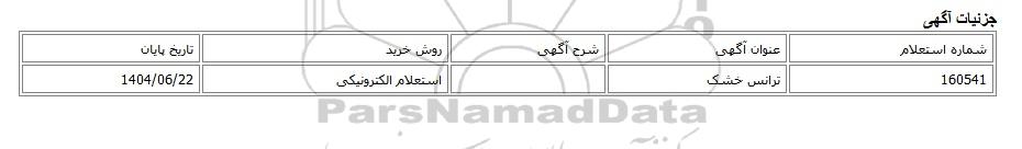 | 160541 | ترانس خشک | استعلام الکترونیکی | 1404/06/22 |