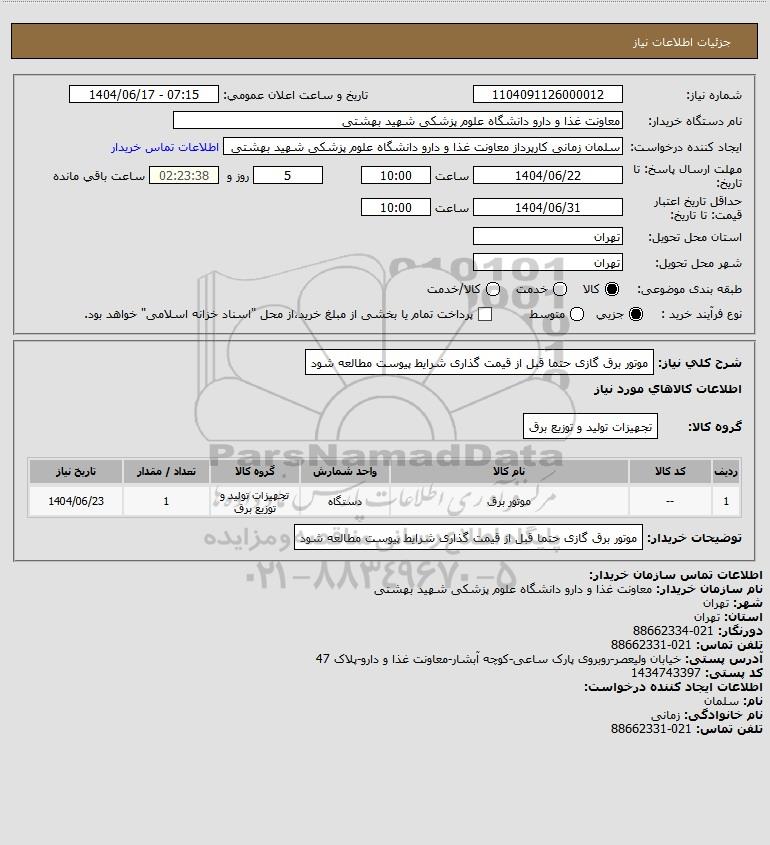 نام دستگاه خریدار:معاونت غذا و دارو دانشگاه علوم پزشکی شهید بهشتی