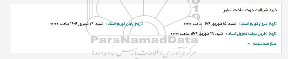 تاریخ پایان توزیع اسناد: شنبه، 29 شهریور 1404 ساعت 00:00
