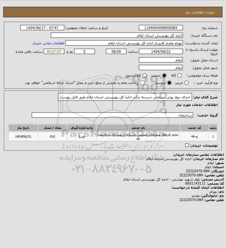 شرح کلی نیاز: اجرای دیوار پوش سیمانی شسته رنگی اداره کل بهزیستی استان ایلام طبق فایل پیوست