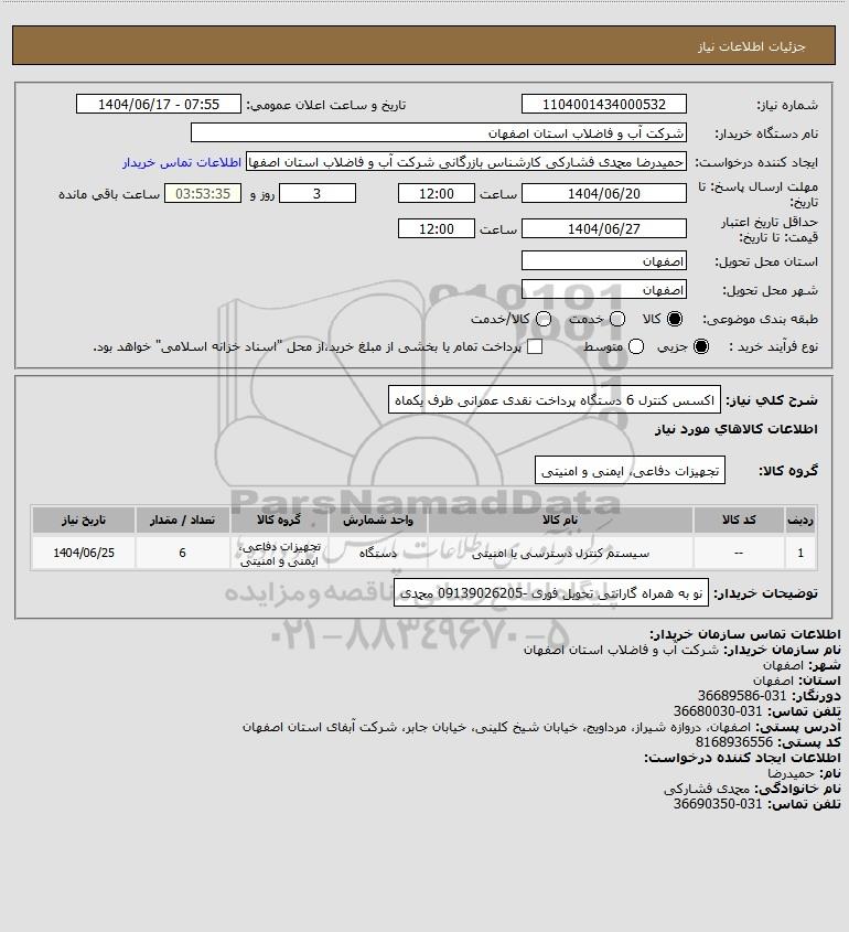 شرح کلی نیاز: اکسس کنترل 6 دستگاه پرداخت نقدی عمرانی ظرف یکماه