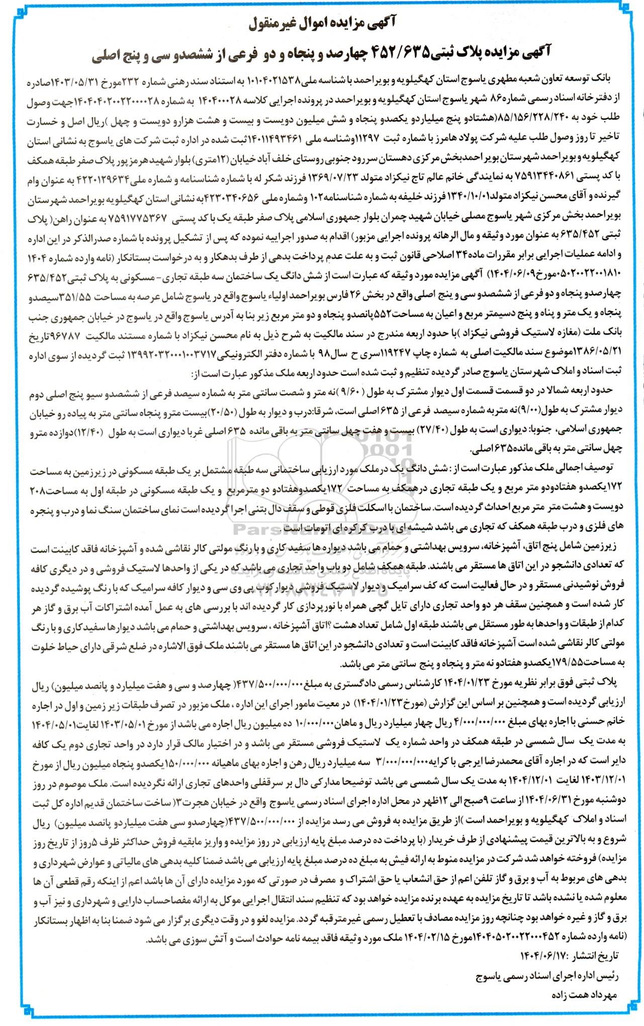 مزایده فروش پلاک ثبتی 452.635 اصلی