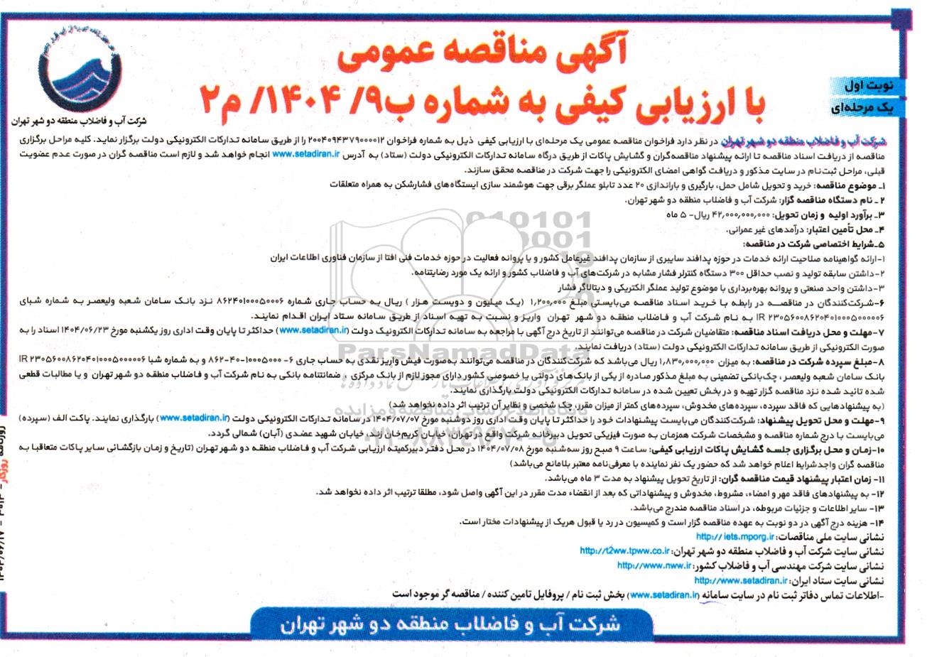 آگهی مناقصه عمومی با ارزیابی کیفی به شماره ب9. 1404 م2