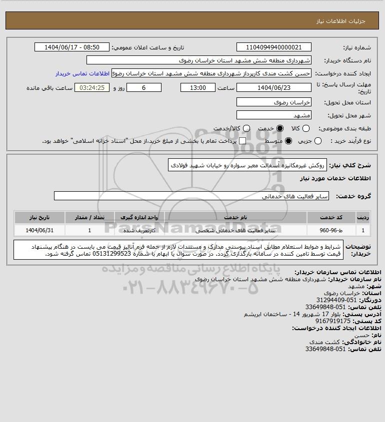 نام دستگاه خریدار:شهرداری منطقه شش مشهد استان خراسان رضوی