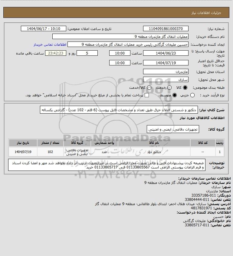 نام دستگاه خریدار:عملیات انتقال گاز مازندران منطقه 9