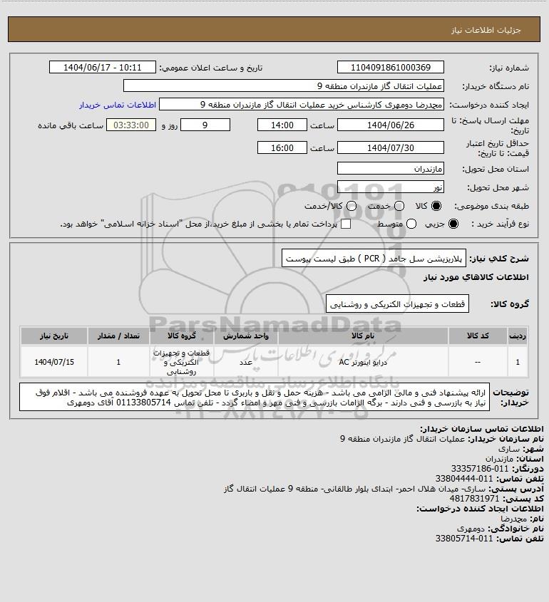 استعلام پلاریزیشن سل جامد ( PCR ) طبق لیست پیوست, استعلام پلاریزیشن سل جامد ( PCR ) طبق لیست پیوست