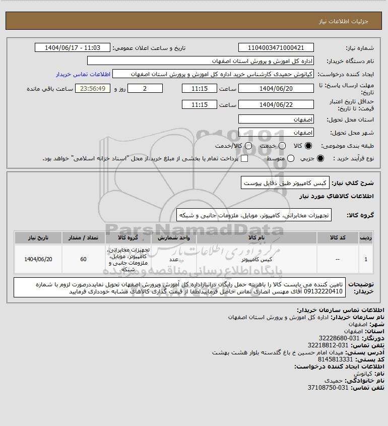 نام دستگاه خریدار:اداره کل اموزش و پرورش استان اصفهان