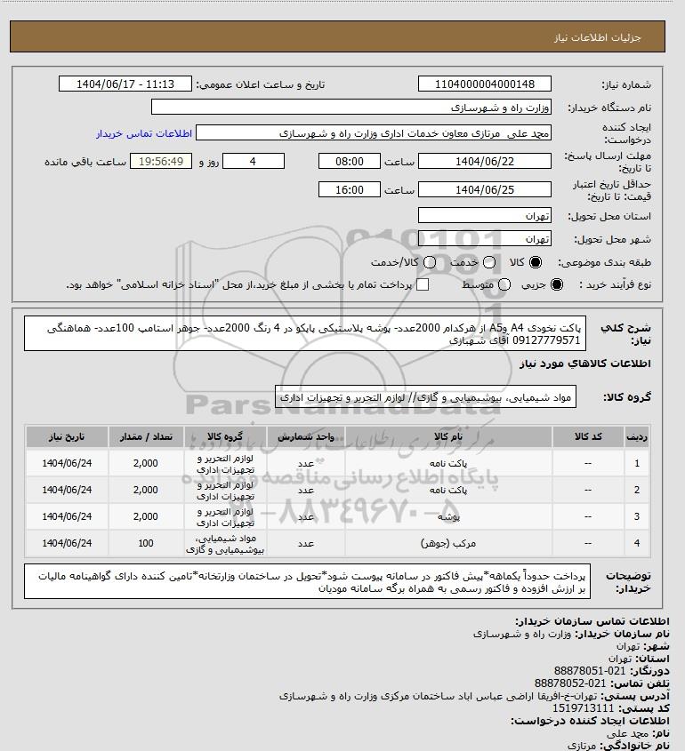 نام سازمان خریدار: وزارت راه و شهرسازی