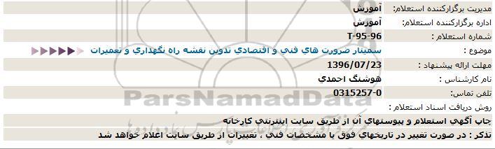 استعلام بها و موضوع استعلام استعلام,استعلام سمینار ضرورت های فنی و اقتصادی تدوین نقشه به اطلاع کلیه شرکتها و افراد متخصص واجد شرایط میرساند، آگهی گذار در نظر دارد از طریق استعلام بها، نسبت به انتخاب و دریافت پیشنهادات اقدام نماید. این استعلام با کد آگهی ثبت شده در سامانه خبرگزاری پارس نماد : 951929 منتشر شده است. مشخصات استعلام : تاریخ شروع استعلام: 1396/07/19 آخرین مهلت ارسال پیشنهاد قیمت : 1396/07/23 و محل اجرای پروژه : استان اصفهان میباشد. استعلام قیمت مورد درخواست : استعلام,استعلام سمینار ضرورت های فنی و اقتصادی تدوین نقشه با دستهبندیهای تخصصی و گروه های مرتبط : مشاوره تحقیقات و مدیریت استاندارد, استعلام اطلاع رسانی میگردد.