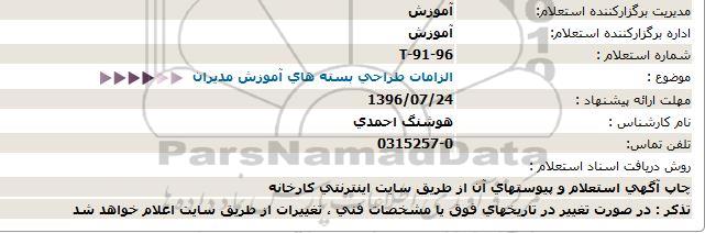استعلام الزامات طراحی بسته های آموزش مدیران , استعلام,استعلام الزامات طراحی بسته های آموزش مدیران