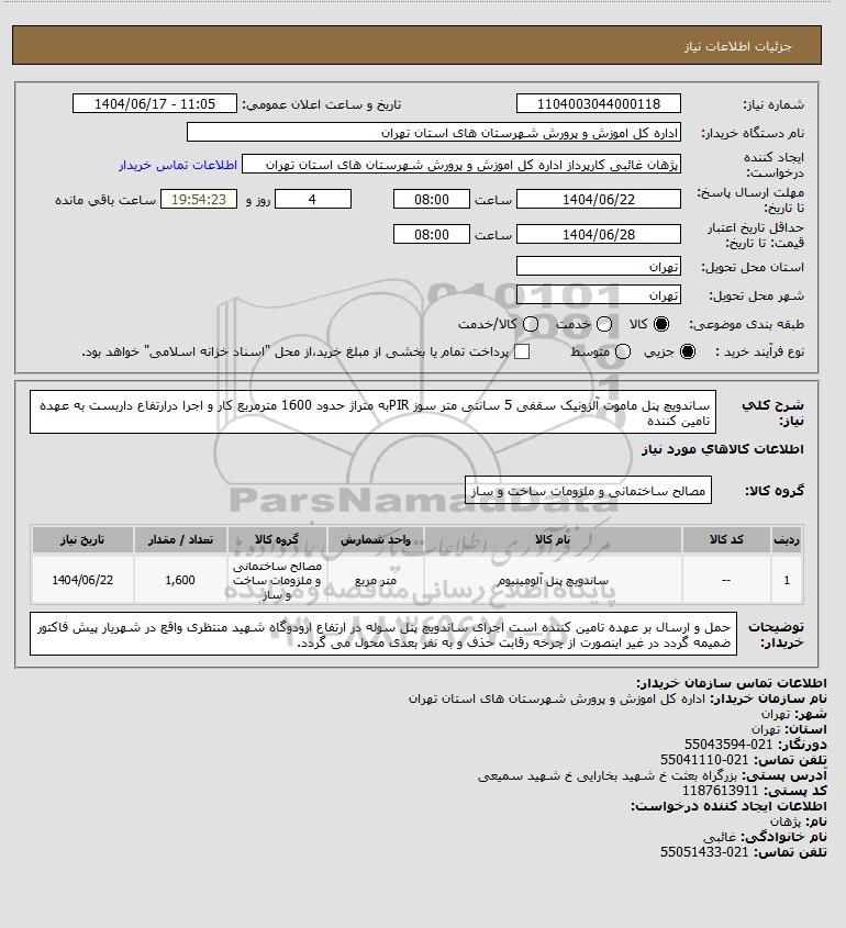 استعلام ساندویچ پنل ماموت آلزونیک سقفی 5 سانتی متر سوز PIRبه متراژ حدود 1600 مترمربع کار و اجرا درارتفاع داربست به عهده تامین کننده, استعلام ساندویچ پنل ماموت آلزونیک سقفی 5 سانتی متر سوز PIRبه متراژ حدود 1600 مترمربع کار و اجرا درارتفاع داربست به عهده تامین کننده